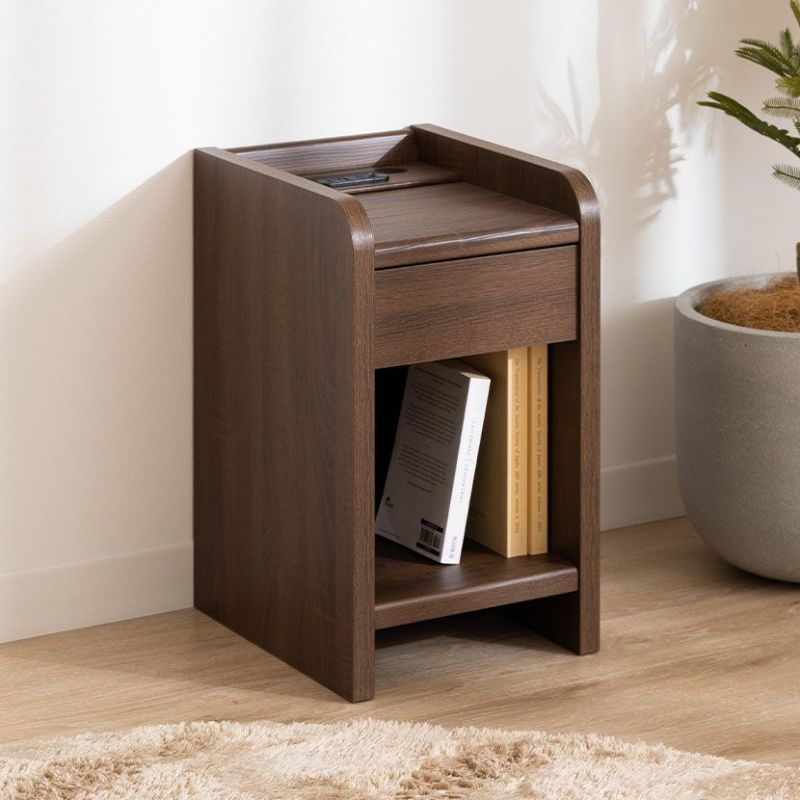 木目調 サイドテーブル ナイトテーブル 引き出し 幅30cm 奥行40cm ② ナイトテーブル 幅30cm 引出しタイプ コンセント サイドテーブル