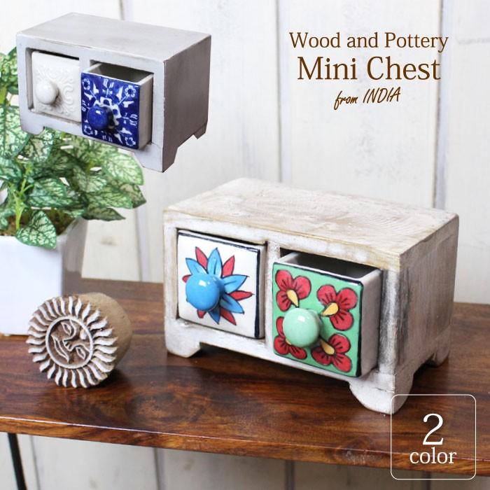 ドロワー ブルーポタリー ミニチェスト 陶器木製 小物入れ ドロワー ブルーポタリー ミニチェスト 陶器木製 小物入れ