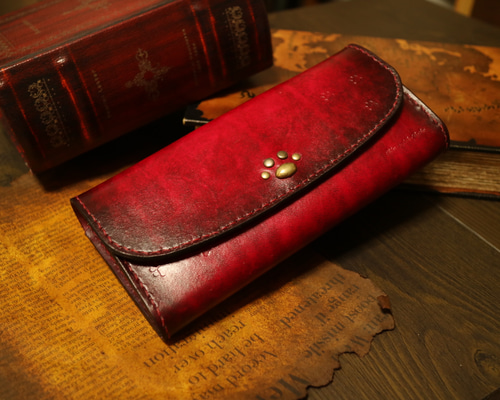 【ハンドメイド】オーダー赤い魚仕様 猫のバイカーズウォレット 財布 ハンドメイド】猫のバイカーズウォレット財布赤い魚